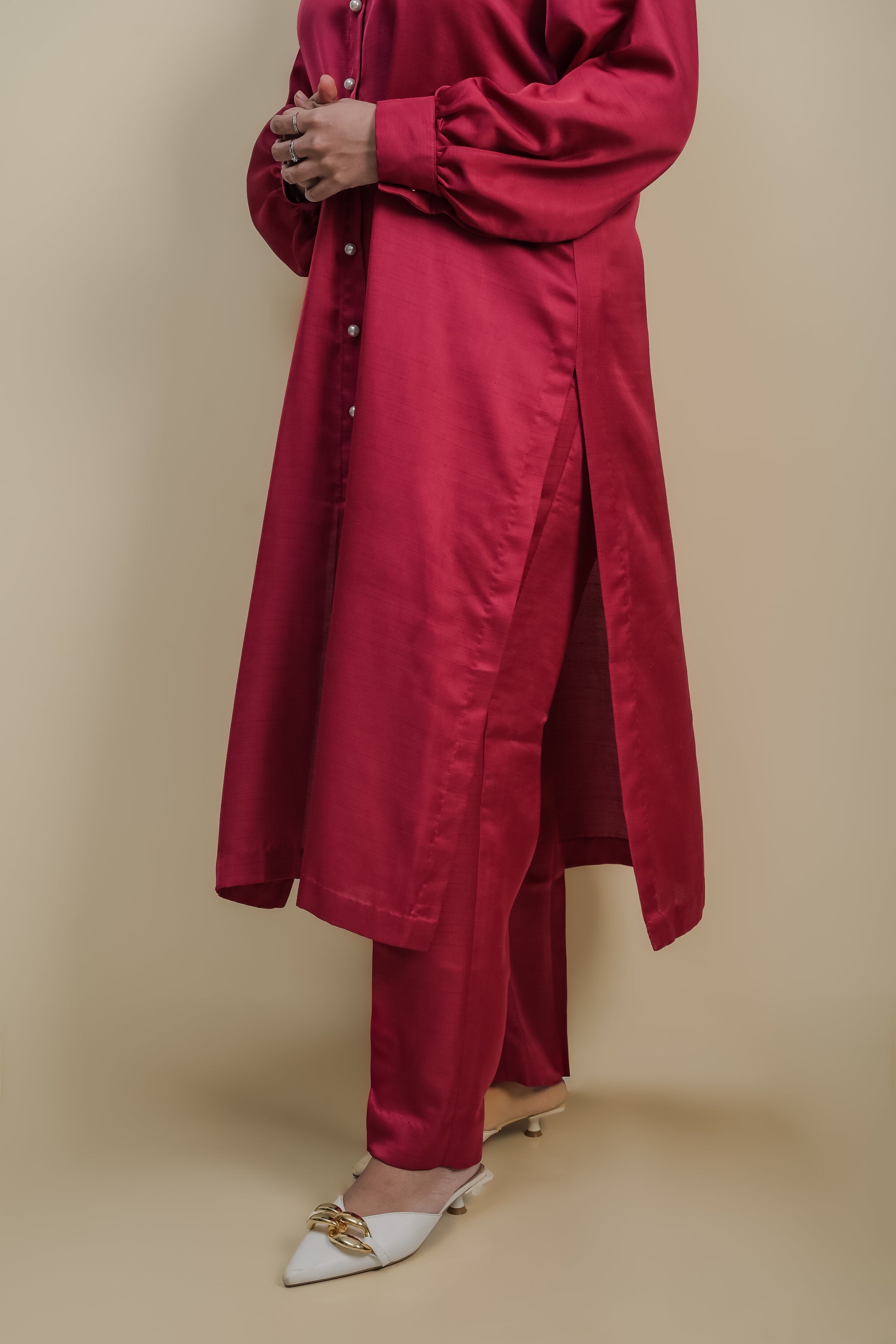 - Fuschia Pink Kurta and Pants, a dreamy duo in a soft breezy fabric.